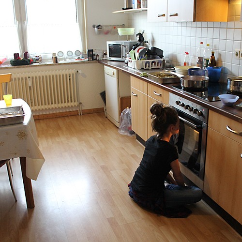 Küchenwahnsinn: Kasselerauflauf für Chris und mich (großer Topf + Auflaufform), Hühnerfrikassee für die Kinder (Topf + Mikrowelle) und schmelzende Schokolade im Backofen für Choco Crossies (u.a. für Oma).