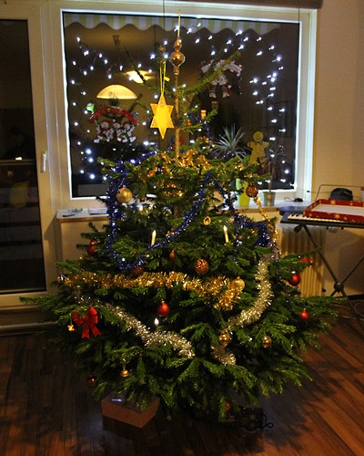 … bis Weihnachten. Der Tannenbaum steht, die letzten Spielverabredungen (Dienstag) sind getroffen. Jana durfte sich heute ihre Impfung abholen (und deshalb Ballett sausen lassen), Lena die U-Untersuchung hinter sich bringen. Die Augen müssen dringend mal wieder kontrolliert werden (haben eh am 18.1. Termin), Ergo wurde auch genehmigt. Allergietestung machen wir demnächst mal. Gewicht wie immer an der oberen Normalgrenze. Ich hatte heute morgen mal wieder Spaß mit Sehstörungen, die sich zum Glück nach einer knappen Stunde wieder verabschiedeten. Morgen: offene Ballettstunde Smiley mit geöffnetem Mund.