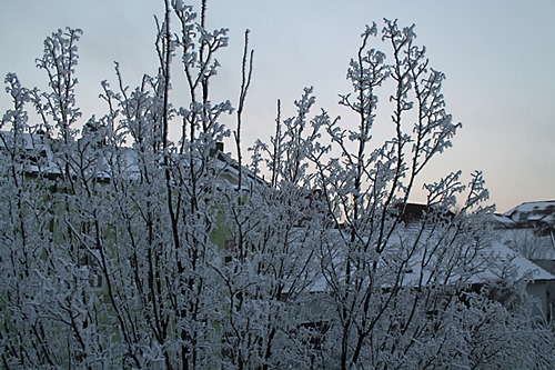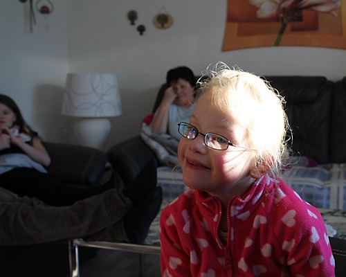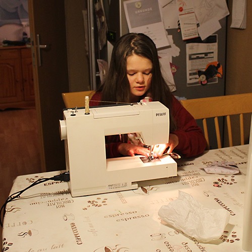 Aber wie gesagt: zuerst eroberten wir Omas Küche. Jana bestand darauf, für Oma eine Wärmflaschenhülle zu nähen und nach dem Essen bestanden beide Kinder darauf, in den Schnee raus zu gehen. Chris hatte schlauerweise den Schlitten eingepackt und als der Nachbarshund sich noch dazu gesellte, war die Gaudi eh groß.
