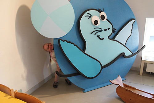 Vorher stand für mich jedoch der Tierarzt auf dem Plan. Und Einkauf. Und Kinderabholung. Und Tierabholung. Und Kinderbringdienst (zum Ballett). 17.45 Uhr machten Lena und ich uns dann aber doch endlich auf den Weg zum Aquarium. Trafen einen Ex-Kollegen, kamen aber trotzdem rechtzeitig zur Seehundfütterung im Aquarium an.