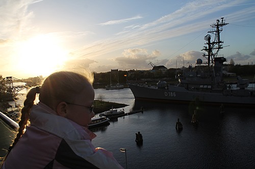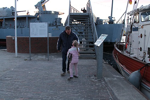 Beim Marinemuseum trafen wir aufeinander und Lena durfte mit Papa noch im U-Boot verschwinden (ich hatte mich geweigert), bevor es mit der Barkasse rüber ging zum Küstenmuseum. Da ist Jana ja Stammgast und Lena berühmt-berüchtigt (weil nicht die Schwester) und so mussten wir den einen oder anderen Plausch halten. Am Donnerstag wird Jana ihren Girl’s Day dort verbringen worüber sich M. (er und Jana sind beim Du) freut und auch Frau P-S meinte, Jana solle ruhig auch bei den Veranstaltungen für die Kleinen mitkommen (wäre auch als Puffer gut, Frau P-S und Lena sind nämlich nicht kompatibel).