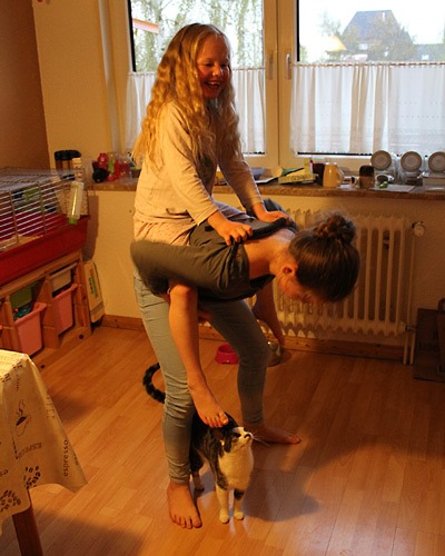 … kam heute doch noch mal Besuch. Eigentlich wollte der Besuch von gestern nur wissen, wo man hier denn parken könnte und weil ich Chris gestern so von den beiden vorgeschwärmt habe, musste er sie einfach kennen lernen. Also wurde die Katze kurzerhand für 2 Stündchen weggesperrt, das Meerschwein rettete sich ins Haus und wir hatten sehr, sehr lieben Besuch.
