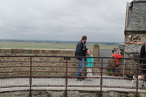 Wir waren morgens (es regnete in Strömen) schon um kurz nach 9 Uhr mit allem fertig. Koffer waren gepackt, nur die Endabnahme ließ auf sich warten. Also noch einen Kaffee (wieder mit den Holländern *g*) getrunken, die Kinder konnten noch eine Runde rumalbern, Selfies machen, etc. pp. Um kurz nach 11 Uhr waren wir aber dann doch fertig, mussten uns verabschieden und machten uns auf den Weg nach Avranches mit einem Umweg über McDonalds. In Avranches selber hatten wir spontan Probleme einen Parkplatz zu finden, weil alles wegen der Tour de France schon abgesperrt war. Besuchten kurz die Kirche und vor dem großen Regen noch den Botanischen Garten mit der tollen Aussicht. Weiter ging es nach Hause. Und da sind wir wieder