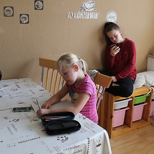 Lenas Hausaufgabe übers Wochenende: ein Familienmitglied beschreiben. Gut, das Jana wenigstens für eine kurze Pause (2 Stunden) nach Hause konnte.