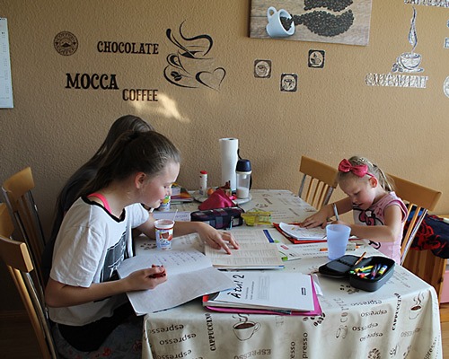 Hausaufgaben. Und Französisch lernen für die Großen.