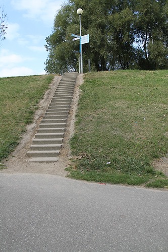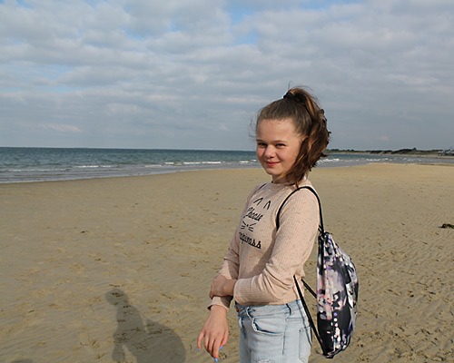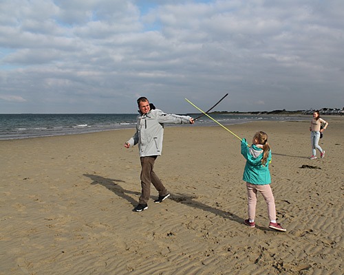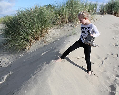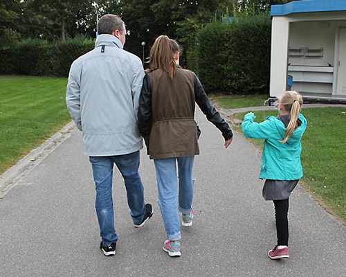 Gleichschritt Marsch auf dem Weg zum Strand. Lena mit Handy, weil sie den kurzen Weg filmen sollte.
