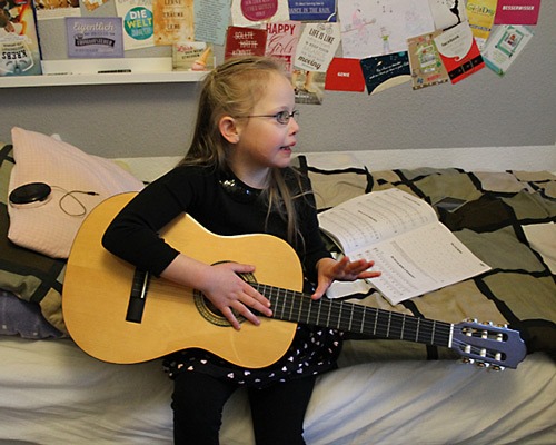 Jana hat ein Opfer gefunden, mit dem sie Gitarre spielen und üben kann: B., Janas Freund. Der mir wiederum den Ohrwurm des Tages verpasst hat, weil er mal eben schnell auf der Gitarre die Titelmelodie von “Löwenzahn” anstimmen musste.