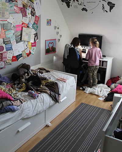 Lena kam heute Nacht schon an. “Schmerzen in der Backe”. Ganz schlimm. Ibuprofen, Eiswürfel und eine Einladung in Mamas Bett halfen. E. sollte bitte trotzdem unbedingt heute kommen. Da es ihr dann auch besser ging, erlaubte ich das. Nachmittags dann wieder: Schmerzen in der Wange (kommender Backenzahn war bis dato unser Verdacht). Mittlerweile plus Kopfschmerzen und heißer Birne. Der Test ergab: Fieber. Und den Rest des Nachmittags durften Lena und ihr Besuch einen Film schauen und sich auf die Couch hauen.