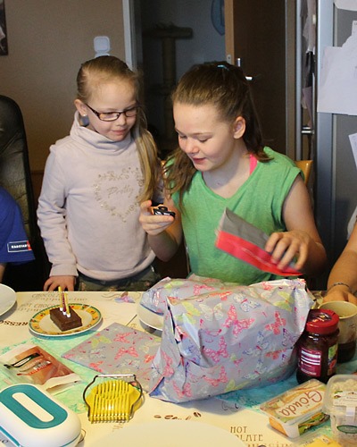 … haben wir einen Teenager im Haus. Jana und ihre Freunde haben reingefeiert und die Nacht durch gemacht (sie wurde um 3.25 Uhr geboren). Chris und ich uns haben uns heute morgen revanchiert und haben die Kinder – nachdem wir schon um 9 Uhr den Einkauf erledigt hatten – um 9.30 Uhr singend aus dem Bett geworfen. Janas Freunde verließen uns einer nach dem anderen und nach einer kurzen Pause ging es weiter mit Oma, Opa und Valeska.