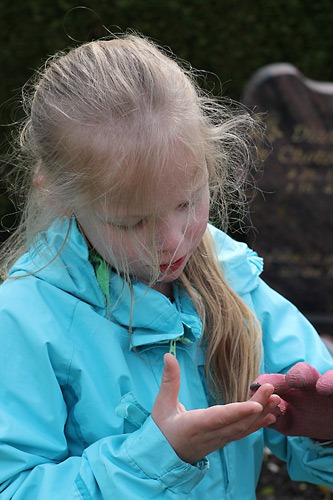 sich um das Grab von Mama und Papa zu kümmern. Die letzten Wochenenden scheiterte es am Wetter, aber heute zogen wir (bis auf Jana, die hatte Ballett) zum Friedhof. Chris riss alles raus, ich erledigte die Entsorgung und Lena fand in “Rolli” einen neuen Freund. Der ihr leider regelmäßig runterfiel und den sie nicht mit nach Hause nehmen durfte *schauder*. “Ringel” wurde von mir sofort auf dem Kompost entsorgt, da ließ ich keine Diskussionen und kein Spiel zu *g*. Ringel ist ein Regenwurm, Rolli eine Kellerassel. Fertig sind wir noch lange nicht, die nächsten Wochenenden muss bei schönem Wetter weiter gemacht werden.