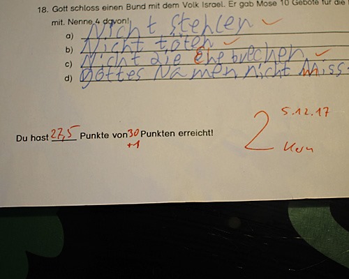 … stellte sich dann als ganz einfacher Multiple-Choice-Test heraus. Durchgeschaut hat die Lehrerin die Arbeit schnell und Lenas Test wird wohl eine 1 werden. Ihre Mappe haben wir immerhin auf eine 3 hochgedopt mit Janas Anmalkünsten *lach*. Es lebe die Schule. Wobei ich auch mittlerweile die Erklärung dafür habe: die neuen Lehrer sind allesamt nur an 2 Tagen in der Schule, weil sie normalerweise an der Oberschule unterrichten. Das die mit Grundschulpädagogik nicht arg viel am Hut haben, verwundert nicht.