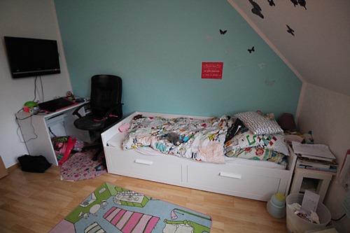 Was heute keine Fortschritte gemacht hat, war Lenas Zimmer. Eigentlich wollte ich das aufräumen in meinem Urlaub. Und dann kamen mir Spastik und Kopfschmerzen in den Weg. Meine – mich hoffentlich inspirierenden – Fotos für heute also: Bilder von ihrem Zimmer.