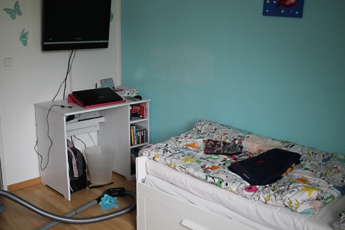 Heute habe ich es endlich geschafft, Lenas Zimmer auszumisten. 3,5 Stunden, ein Korb voller Spielzimmersachen, 2,5 blaue Säcke voll Müll und ein Karton voll aussortierter Klamotten. Spielzimmer werden wir die nächsten Wochen irgendwann angehen.