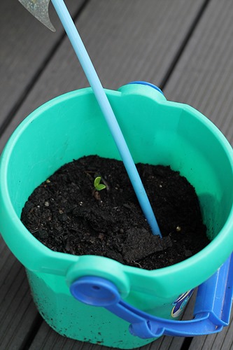 Da war im Herbst ein Kind, das darauf bestand Apfelkerne einzupflanzen. Und die sich erbittert dagegen wehrte, als ihr Papa vor ein paar Wochen die Erde im Eimer wegräumen wollte. Ich war ja schon lange der Meinung, das unser Hof ein Apfelbäumchen brauchen könnte …