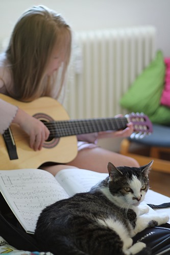 Kaum holt Lena die Gitarre raus, sitzt Lucky auch schon auf der Tasche. Immer.