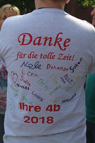 Die Abschiedsfeier selbst war wunderschön und ging ganz toll damit los, das alle Schüler die Treppe und den Gang entlang standen und “Viertklässler” skandierten, als diese durchs Spalier in die Aula zogen. Da flossen auch bei den Kindern schon die ersten Tränen und ich verteilte großzügig Taschentücher.