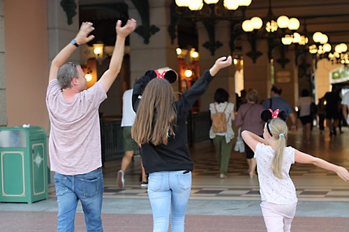 Auf dem Weg zum Auto. Pause vor der abendlichen Illuminations-Show.