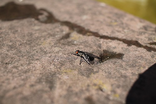 Eine Fliege, die ich gerettet habe. Der ebenfalls gerettete Marienkäfer ist im Hof hier abgesetzt worden von Lena.