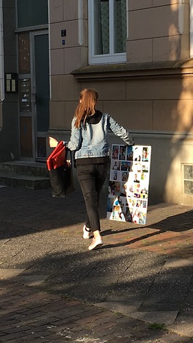 Jana mit ihrer Leinwand und den Geschenken. Wochenlang hat sie alle möglichen Leute genervt, damit die ihr Fotos senden.