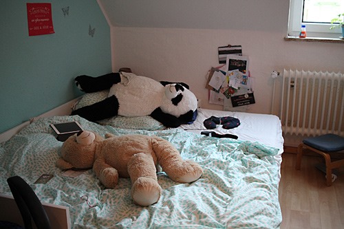 Vier der Elternpaare aus unserer Klasse die da waren, müssen morgen auch zum Elternsprechtag, weil “Redebedarf” besteht. Das beruhigt mich ein wenig *g*. Neben einem Vortrag, viel Witzeleien und Übungen blieb noch Zeit, ein paar Worte mit dem Direktor zu sprechen. Der jetzt mal nachhaken will, ob alles so seine Richtigkeit hat. 30 Min. max. sollen die Kinder nach der Schule noch etwas für die Schule tun. Sah in Englisch so aus: letzte Woche 16 kurze Sätze zu einem Bild schreiben (There are two chairs in the room, there is one clock in the room, etc. pp.) als Hausaufgabe, am Wochenende für die Arbeit üben, 6 (!!!) Buchseiten Vokabeln können. Na ok *großzügigbin*: zwei der Seiten mussten sie schon letzte Woche Dienstag anfangen zu lernen. “Nur” 4 Seiten sind seit Freitag dazu gekommen.
