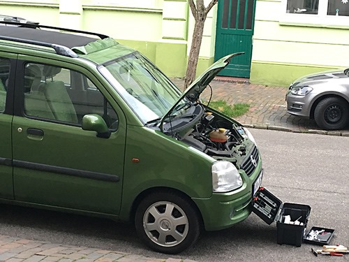 Heute morgen habe ich Lena zur Schule gefahren und bin hinterher zur Arbeit. Bis 15 Uhr gearbeitet, Lena von der Schule abgeholt, eingekauft, Lena beim Gitarre abgesetzt und schnell nach Hause. Damit die kalten Sachen auch direkt in den Kühlschrank konnten. Die Brücke ist ja für einige Zeit gesperrt, also muss ich zum NGW momentan immer über die Gökerstraße. Da der Weg mit Ampeln gepflastert ist, fährt man länger. Also bin ich schnell wieder zum Auto und wollte zurück fahren. Betonung auf “wollte”, weil nix ging. Alles leuchtete schön, Motor blieb aber aus. Zündschloss kaputt. Sämtliche Lämpchen blieben dann auch an, weil: aus ging auch nix mehr. Chris informiert, Auto abgeschlossen und dann die liebe G. angerufen und sie gefragt, ob sie mit mir Lena holen mag. Mochte sie