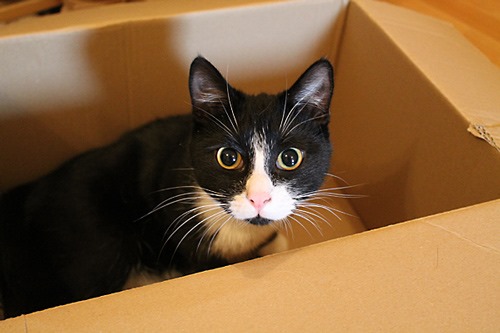 Gastkater Nr. 2. Eigentlich scheu, oder aber auch nicht *g*. Spielt und tobt und schnurrt ziemlich laut. Ist mir heute Nacht auch fleißig um die Beine gestrichen.