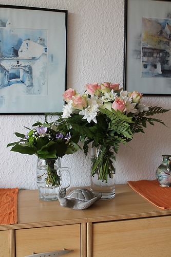 Muttertagssträußchen von Lena, Blumenstrauß heute von Janas Freund und Kröti von Jana heute. Mein neues Parfüm schon weg gestellt