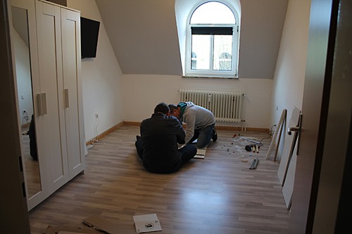 Das haben wir heute mal ausprobiert. Schlafzimmer renovieren steht zwar erst die nächste und übernächste Woche auf dem Plan, aber diese Woche ist Brimnes im Angebot. Also durften Chris und Peter heute bei Ikea ein paar Pakete einladen und hier hochschleppen, brauchten aber nicht durch den Laden selbst.
