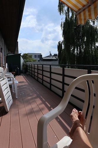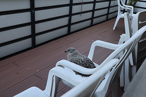 … hatte ich gestern. Heute also ein paar Bilder mehr. Gestern morgen erwartete mich auf dem Balkon eines unserer Möwenbabys. Ein paar Stunden später hatte Mama und Baby Möwe sich aber soweit beruhigt, das ich die Markise ausfahren und mit Lena zusammen wenigstens draußen sitzen und spielen konnte. Heute morgen ist das Baby, das Lena Kirby getauft hat, dann aufs Garagendach gewandert.