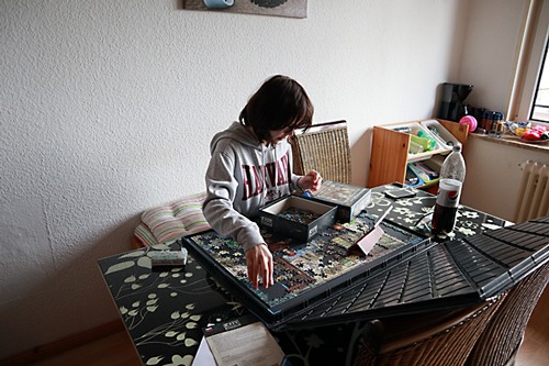 … war heute dran und musste fertig gemacht werden. Und nebenbei hab ich ein Puzzle mit Lena fast fertig bekommen, Wäsche gewaschen und Rainer hat Ostergeschenke für die Kinder vorbei gebracht. Eigentlich wollten wir den Schreibtischtausch (Jana <-> Lena) morgen machen, aber morgen will ich Kuchen backen und muss den Einkauf erledigen. Also: doch noch vorhin schnell schon alles umgebaut.