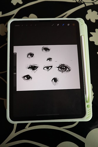 Mein i-Pad ist eigentlich nicht mein i-Pad. Eigentlich klaut Lena sich das jeden Tag für Stunden um weiter zeichnen zu üben. Gestern: Augen. Wohlgemerkt: das Kind, das immer noch eine Sauklaue hat, auch nach 3 Runden Ergotherapie.