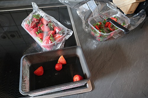 … sind die Kinder (oder jedenfalls Jana) ja eher umweltbewusst unterwegs und besonders Jana achtet sehr auf das, was sie isst. Die ganz, ganz, riesengroße Ausnahme sind Erdbeeren. Sobald es die ersten Erdbeeren gibt, auch wenn sie aus Spanien kommen und einen ökologischen Fußabdruck hinterlassen der größer ist als ein Elefantenfuß, sie müssen gekauft werden. Mindestens 3 kg die Woche und ich kann gar nicht so schnell schneiden, wie sie mir weggegessen werden … Ich freu mich schon aufs Erdbeerfeld, wenn endlich hier Saison ist.