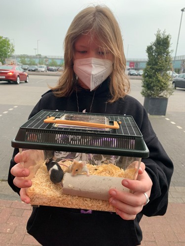 Lena brachte aus der Schule mal wieder die Frage aller Fragen nach einem Haustier mit. Vor ein paar Wochen hätten wir ja fast eine Katze bekommen. Daraus wurde leider nichts, also gab es heute das zweitbeste (Lenas Meinung nach) danach: Mäuse.