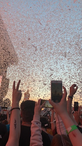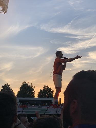 Einlass im Stadion sollte um 15.30 Uhr sein, also fuhren wir früh genug los und dank der richtig guten Parkplatzorganisation waren wir schnell eingewiesen und standen in der schon sehr langen Schlange an. Mit Umweg über die Pommesbude und den Getränkestand trafen wir im Front-of-Stage-Bereich ein. Und machten es uns da erst mal auf dem Boden bequem. 17.30 Uhr ging es mit dem ersten Act los, bei dem zweiten Act “Mother Mother” waren Lena und zwei weitere Mädchen in unserem Bereich völlig aus dem Häuschen (der Sänger hat in unsere Richtung gedeutet und “You are beautiful” bei dem einen Lied gesagt) und fast pünktlich starteten Imagine Dragons kurz vor 20 Uhr.  Einfach unglaublich war das Konzert. Ich war zwar ziemlich heiser nach “Happy Birthday” (für den Sänger), “Forever Young” (weil halt “Forever Young”) und “It’s ok”, weil mein Lieblingslied von der neuen CD, das ich schon seit Tagen vor mich hin singe, aber das war es wert.