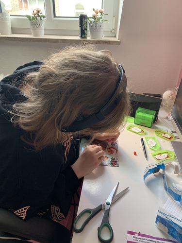 Heute. Bastelarbeit, die sie von Tante Helga mitgenommen hat.