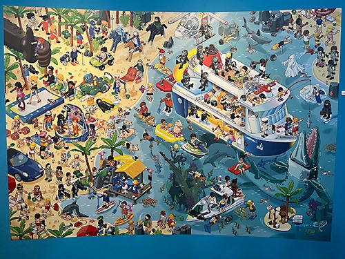 Playmobil-Wimmelbild. Meine Favoriten sind Captain Future (unten Mitte am Rand) und Doktor Bob (oben links in den Palmen neben Orange is the new black).