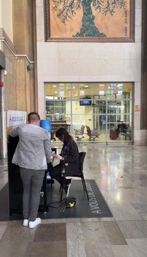 Beim 2. Museum mussten wir auch klopfen, weil es Probleme mit der Tür gab. Eine schöne Ausstellung im Bahnhof zum Thema Zugfahrt. Miniatureisenbahnen, Dampfmaschine, alte Schilder, Apparate, Blechspielzeug, auch ein schönes Sammelsurium. Chris kam ins Gespräch mit einem der Besitzer, der an einer Modelleisenbahn rumbaute und Deutsch sprach, weil er jahrelang in Hamburg gelebt hat.