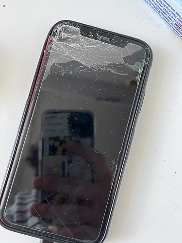 Handy in Manteltasche, Mantel noch aus dem Auto raushängend, zufallende Tür. Jana braucht ein neues Handy …