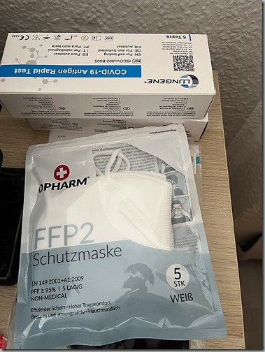 Und dann kam Chris mit Gliederschmerzen und noch erkälteter als vorletzte Woche aus seinem Büro und wir durften schauen, wo man noch Test und Maske kaufen kann (Spoiler: Rossmann hat jetzt keine Pakete mehr). 2 Tests später: positiv und noch mal positiv.