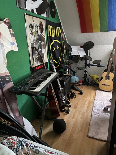 Veröffentlicht in Alles mögliche … Veröffentlicht am 1. Dezember 2024 von Thea Es wird immer voller. Momentan: 2 E-Gitarren, 2 Akkustik-Gitarren, ein Akkustik-E-Bass (kann beides), ein Keyboard, ein E-Schlagzeug, ein Verstärker.