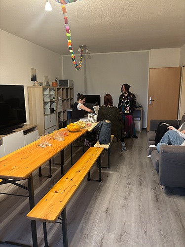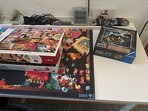 … die Party. Knapp 30 Mann insgesamt verteilten sich hier auf die Räume und selbst wenn ich mich hätte zurückziehen wollen: nach T.s begeisterter Begrüßung “meine Stiefschwiegermama!!!” (fragt nicht), der freudigen Begrüßung vom Warumchen und von vielen anderen – neuen und alten – Gästen, war das gar keine Frage mehr. Es gab keinen Alkohol, dafür aber viele, viele nette Gespräche und Gelächter. Und von K. ein Puzzle für Jana, das er doch garantiert nur für sie gekauft hat weil er weiß, dass ich gerne puzzle *g*. Ich hab es mir auch gleich geliehen von ihr