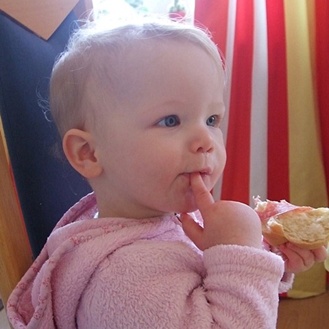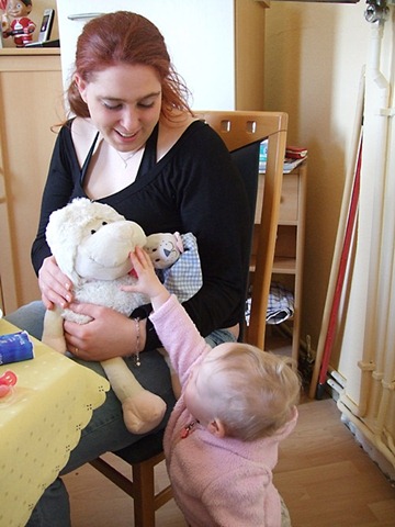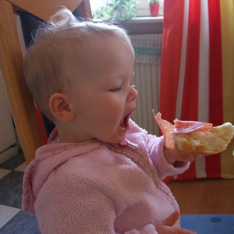 Heute morgen um kurz vor 5 Uhr erscholl übers Babyphone der “Aaaaaaaalle”-Alarm, ich hab Lena dann rüber geholt und während sie noch ihre Flasche trank, war ich schon wieder im Land der Träume. Bis kurz nach 7 Uhr durfte ich da auch bleiben, dann versuchte Lena mir gewaltsam ihren Schnulli und ihr Hasi unterzujubeln. Hasi lass ich mir ja noch gerne gefallen, aber einen Schnulli brauch ich nun wirklich nicht mehr. Da Chris ja ausschlafen durfte und garantiert wach geworden wäre, wenn Lena bei uns rumturnt, musste ich wohl oder übel um 7.15 Uhr meine Knochen aus dem Bett schwingen *gääääääähn*. Die nächsten 2 Stunden haben wir irgendwie rumbekommen (was hätte ich die Wohnung schön putzen können, wenn der Staubsauger nicht so laut wäre) und dann ging es los zum Chaos-Trio-Frühstück. Fürs nächste Mal Schnee sollte ich mir merken, das 1. Handschuhe anziehen wirklich ratsam ist und 2. eine Parkscheibe nicht wirklich dazu geeignet ist, das Auto freizukratzen aber dennoch dafür benutzt werden kann (nein Chris, ich habe keinen Eiskratzer im Auto).
