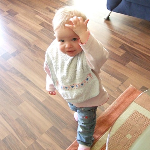 Lena zahnt mit aller Macht. Erst bekam der Zwerg ja so gar keine Zähne, dann gaaaaaaanz spät mal die Schneidezähne und jetzt brechen irgendwie alle Backenzähne gleichzeitig mit allem Elend durch. Unten rechts und oben links ist jeweils einer schon durch, der Rest quält sich (und vor allem mich und meine Waschmaschine bei dem Lätzchenverbrauch) noch.