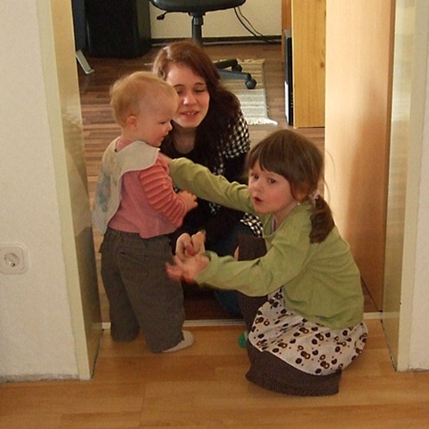 Heute war Geschwistertag im Kindergarten. Heißt eigentlich nur so, meint einfach: jedes Kind darf ein anderes Kind mitbringen. Für Jana war das diesmal wieder Valeska und Lena durfte statt dessen mit mir in Ruhe in die Stadt pilgern. In Ruhe deshalb, weil sie unbedingt “aufen” wollte. Durfte sie aber nur stellenweise, weil ihr Lieblingshobby momentan ist, an mir vorbei in Richtung Straße zu rennen. In der Nordseepassage durfte sie sich hingegen gerne austoben und mit sämtlichen Passanten flirten *g*. Nach dem Kiga haben die beiden/drei zusammen gespielt und erst nachdem Valeska Jana ins Bett gebracht hatte, durfte sie nach Hause gehen.