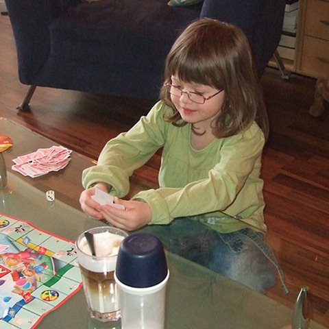 Heute morgen war ich eigentlich noch schön am döseln, als Chris schon aus dem Haus war. Tür vom Schlafzimmer auf, damit ich die Kinder hören kann und einfach noch ein wenig träumen. Wäre ja zu schön gewesen, wenn nicht erst die Katze über mich drüber spaziert wäre, gefolgt von Lena die mir meinem Spritzenkalender auf den Kopf knallte, noch dichter gefolgt von Jana die mich rüttelte um mir mitzuteilen, das sie Hunger hätte. Familie ist was Feines *seufz*. Dann kam Bine heute morgen tatsächlich mal zu früh (normal immer min. 15 Minuten zu spät), als ich nach den rüden Aufweckmethoden meiner Familie noch gaaaaaaaaaanz müde war. Wir haben schön gefrühstückt, geklönt und Bine musste 3 Runden Monopoly mit Jana spielen. Irgendwann mittags kam dann auch Rüdiger und da wir alle noch einkaufen mussten, haben wir uns später zusammen ins Auto gequetscht und Lidl gestürmt. Dabei hab ich dann festgestellt nach Blick auf die Autouhr, das die Zeit für Bohneneintopf nicht mehr reicht und kurzfristig umdisponiert. Passt morgen aber eh besser, weil Jana zu Opa geht (sie isst doch keine Bohnen). Ich hab dann Rüdiger und Bine nach Hause gefahren, bin selbst schnell nach Hause, weil Chris mit Jana nach der Arbeit noch mal los fahren wollte zur Apotheke und hab die Kinder und Einkäufe in aller Eile nach oben geschleppt. Nur um da festzustellen, das Chris heute morgen oder gestern Abend die Uhr im Auto endlich umgestellt hat und sie damit die richtige Zeit anzeigte und nicht mehr eine Stunde zu wenig. Also: völlig umsonst abgehetzt. Na wenigstens haben die Zwerge die Stunde noch schön zusammen gespielt (Lena war das Modell und Jana hat sie umgezogen).