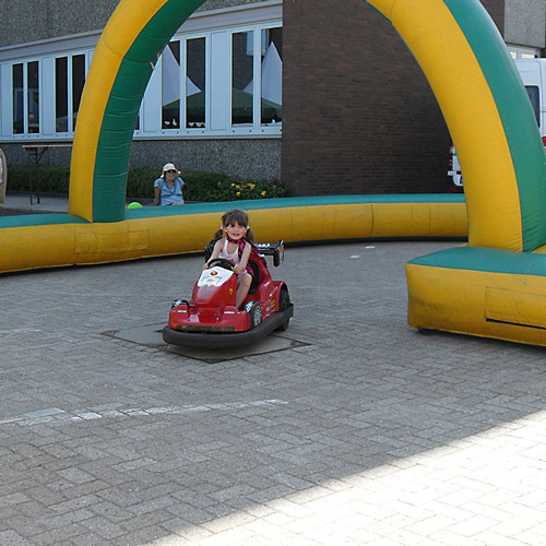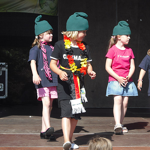 Erst zum GEW, wo Jana ein bißl fahren durfte und dann ging es weiter zur Bühne. Erst tanzte noch eine Flamenco Gruppe, dann bogen plötzlich Oma und Opa um die Ecke und schließlich musste Jana dann hinter die Bühne. Ein wenig kleiner als die Bühne gestern, aber es ging wohl. 🙂