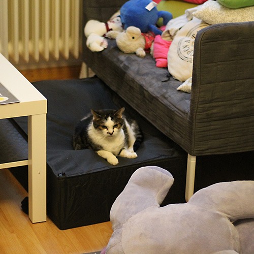 Ab und zu bin ich gemein und ziehe Lucky unter dem Sofa hervor. Katzenlieblingsplatz ![]()