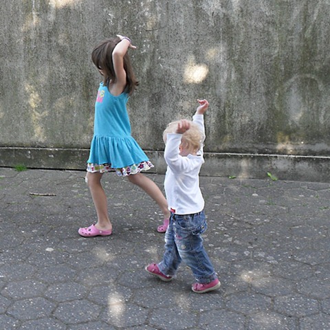 Heute morgen durfte ich dann ausschlafen und erst gegen kurz vor 10 Uhr zogen wir los in Richtung Flohmarkt. Keine Rutsche gefunden, dafür hat Jana sich mal wieder Polly Pocket gekauft. Mittag essen, Wäsche machen, mit Lena spielen und dann ging es ab in den Keller. Eigentlich wollte ich nur eine kurze Hose von Jana suchen (nämlich die auf dem 3. LO hier ) für Lena und einen alten selbstgestrickten Pullover den unsere Nachbarin uns damals für Jana gegeben hat und den sie jetzt gerne ihrem Patenkind weiterreichen würde. Nach oben geschleppt haben wir dann ca. einen Umzugskarton voll Kleidung. Auch wenn Lena noch 74 trägt, 86er Kleider passen schon und dann wären da noch Schlafanzüge, Unterwäsche, 80er Sachen und sogar noch ein paar T-Shirts in 74. Sogar die Winterjacken in 80 hab ich schon mal mitgeschleppt *lach*.