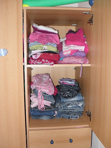 Nachher 🙂 Kategorisch ausgemüllt, auch wenn Zwerg bei jedem 2. Teil am jammern war, das es ihr doch noch passen würde. Klar, in 104 :piebts: