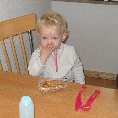 Und ich? Durfte noch eine Runde bis 10 Uhr weiterschlafen, hab dann in Ruhe schön lange geduscht und gaaaaaanz langsam den Haushalt erledigt. Als die Horde dann wieder da war, haben wir Essen gemacht. Chris hat ein wenig F1 geschaut, Lena und Jana haben Winnie Puh am PC gespielt und dann ging es auch schon zu Melanie und Familie. Als wir wieder hier waren, war es auch schon Zeit für das Abendessen (Lena bestand darauf, statt Teller Tupperdosen zu benutzen *g*) und Feierabend war es. Schöner Tag!